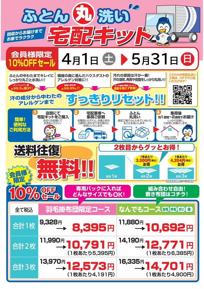 ふとん丸洗い宅配キットセール:2026/4/18~5/31