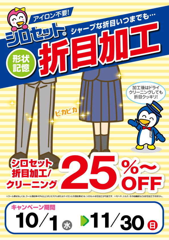 折目加工25%offキャンペーン:2025/10/1~11/30